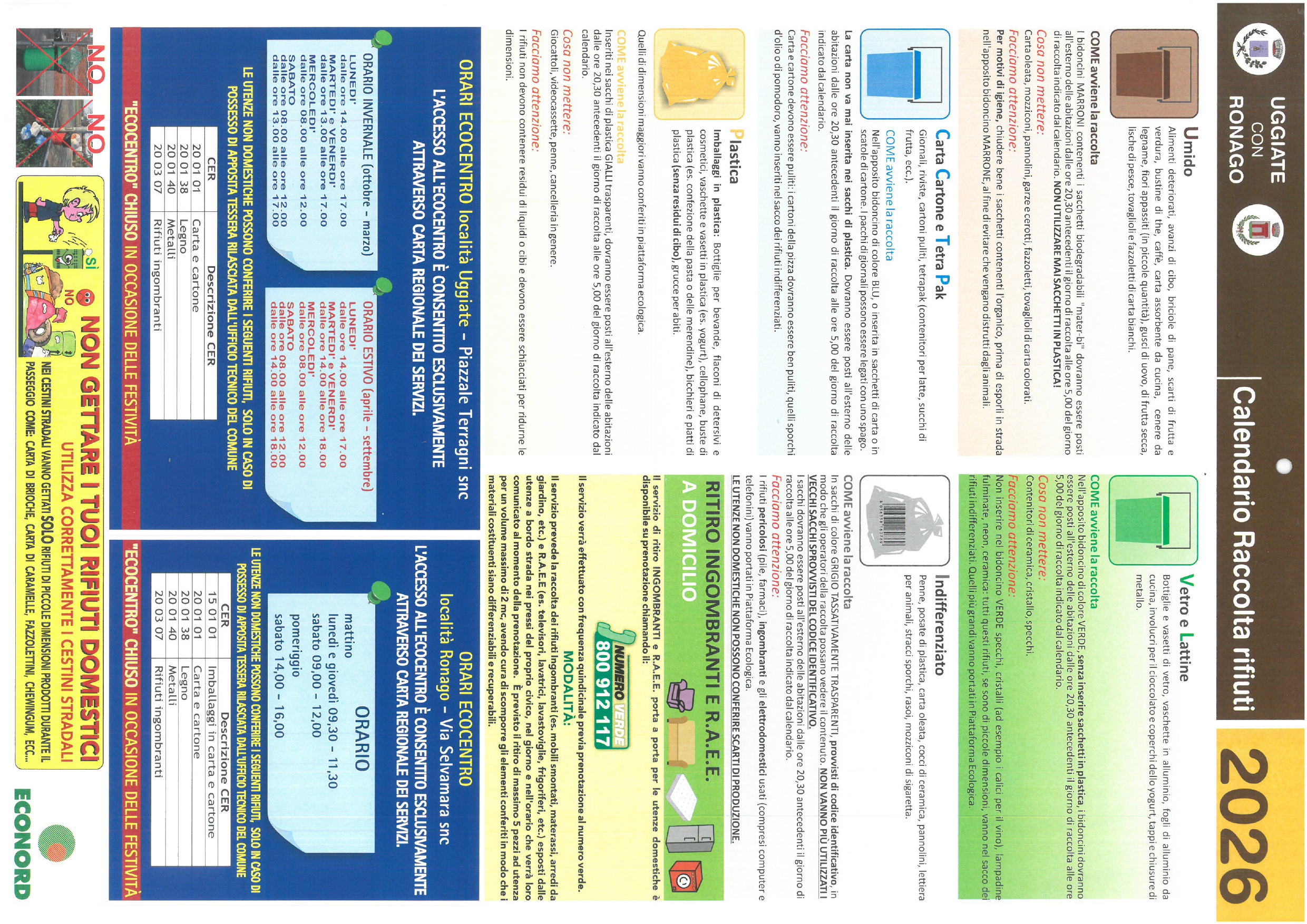 In allegato il Calendario, le informazioni utili per la raccolta differenziata, il ritiro degli ingombranti e le aperture dell'Ecocentro.